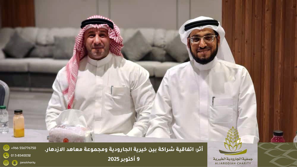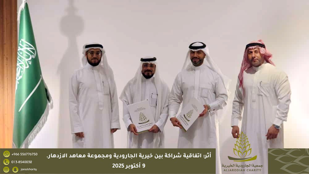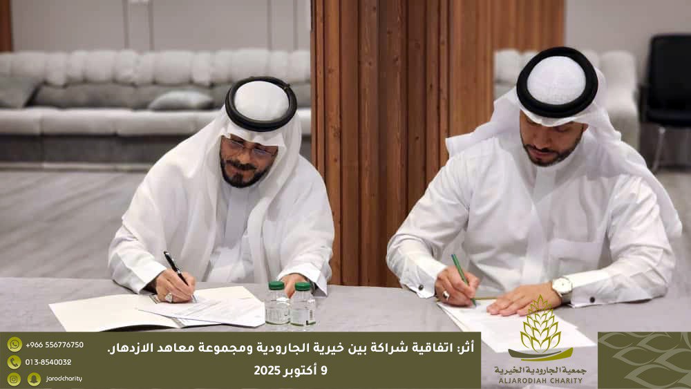 انطلاقًا من مبدأ التعاون والتكامل بين مؤسسات المجتمع، وفي إطار تعزيز دور القطاع غير الربحي في المسؤولية المجتمعية؛ وقّعت جمعية الجارودية الخيرية اتفاقية شراكة مجتمعية مع مجموعة معاهد الازدهار للغات وذلك يوم الخميس 9 أكتوبر 2025م.