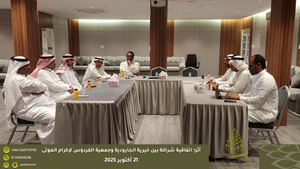 انطلاقًا من مبدأ التعاون والتكامل بين مؤسسات المجتمع، تم يوم الثلاثاء الموافق 21 / 10 / 2025م توقيع اتفاقية شراكة مجتمعية بين جمعية الجارودية الخيرية للخدمات الاجتماعية وجمعية الفردوس لإكرام الموتى وذلك بهدف توحيد الجهود وتعزيز التعاون المشترك وتنظيم العمل والمسؤوليات ذات العلاقة بخدمات إكرام الموتى، بما يخدم أفراد المجتمع ويحقق المصلحة العامة.